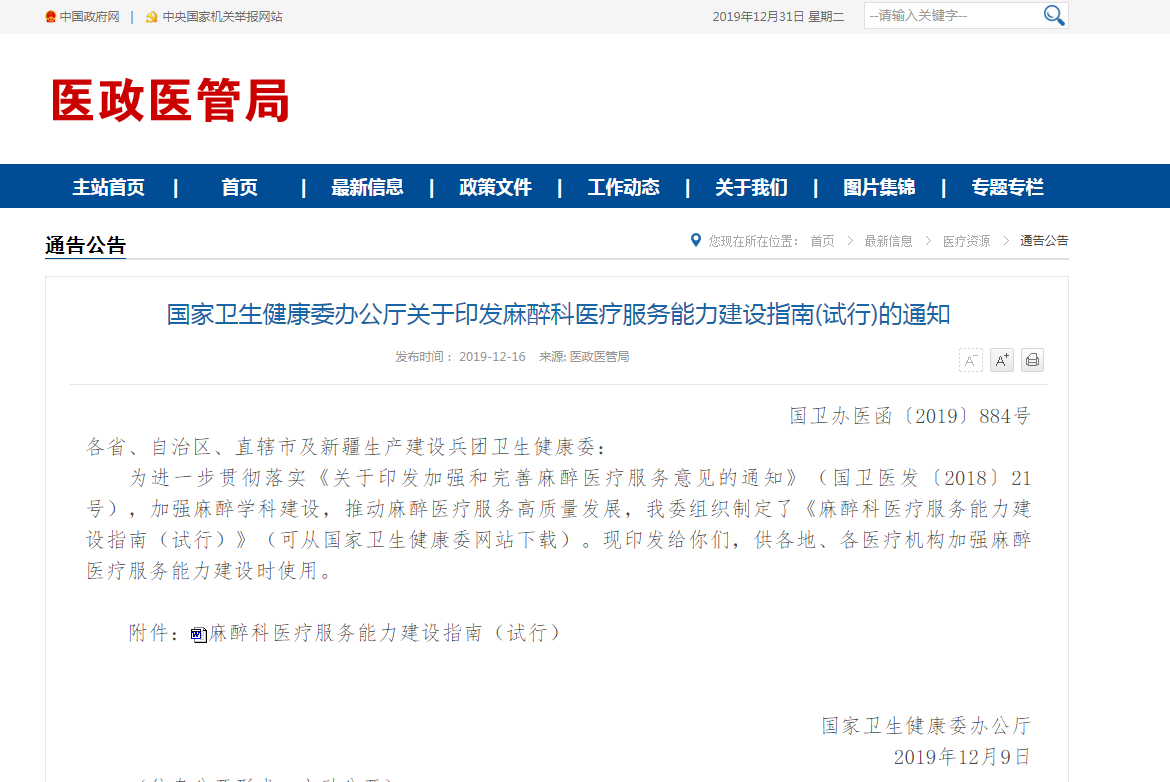 國家衛(wèi)生健康委辦公廳關(guān)于印發(fā)麻醉科醫(yī)療服務(wù)能力建設(shè)指南(試行)的通知